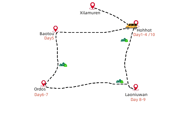 Destinations: Hohhot – Xilamuren – Baotou – Ordos – Laoniuwan