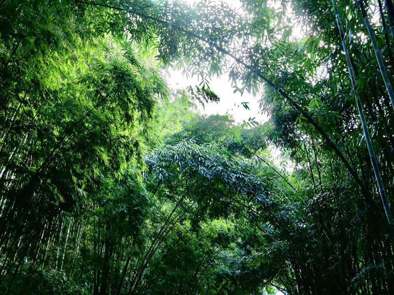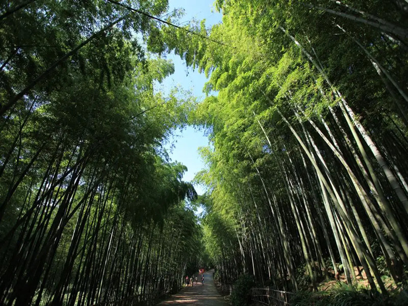 The fishpole bamboo has small but dense leaves, and the greatest characteristic of this bamboo lies in its joints-the joints of the upper half are straight and regularly shaped, but the joints close to the ground are unique and delightful in all different, irregular shapes. Also growing in the bamboo sea are peaceful fishscale bamboo, pretty Chinese goddess bamboo, and Chinese affinity bamboo, which feature the co-existence of adult and baby bamboo. Many bamboo in the bamboo sea belong to rare and precious species.