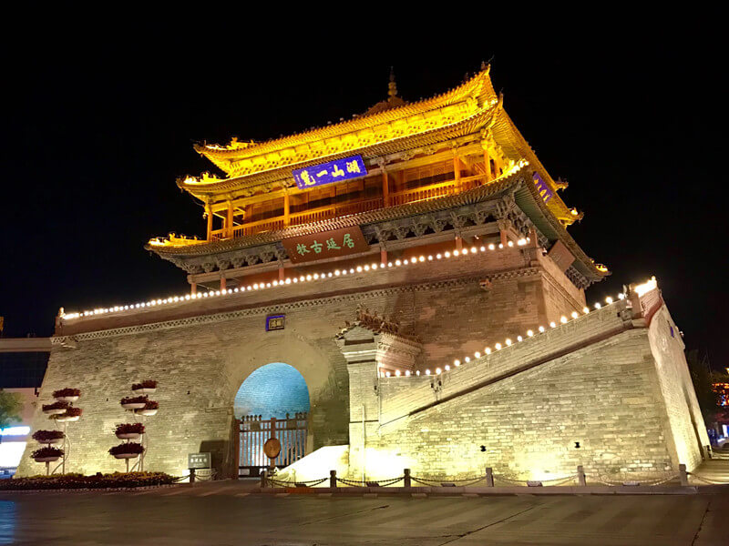 The Bell and Drum Tower in the city center. It was built in imitation of Xian’s Bell Tower and is the biggest drum tower in the Hexi Corridor. Also called Zhenyuan Tower, this three-story building is a traditional Chinese architecture with splendid cornices and fine carving.