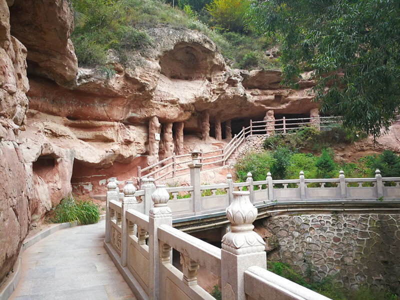 Bingling Temple ( 炳灵寺) is one of the must-see attractions on the Silk Road 丝绸之路, located in the upstream of Liujiaxia Reservoir ( 刘家峡水库 ) and on the North Bank of the Yellow River ( 黄河 ) in Sigou Gorge, southwest of Yongjing County 永靖县, Gansu 甘肃. Along the steep red sandstone cliff, in the scenic area, you will see the air trestle road and various caves, which is entirely worth to visit.