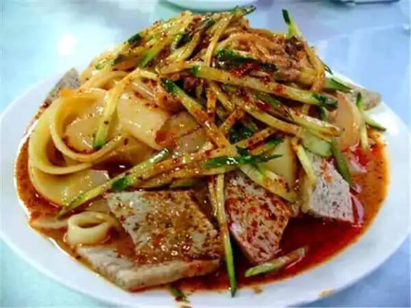 As a traditional handmade wheaten food, it is the best way to treat guests by local people. The cooking is to blend flour with water and roll dough into a thin and at sheet. Cutting a sheet of dough in leek- thinned noodles, then putting them into boiling water till they are done. Other ethen…