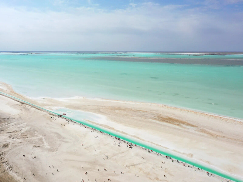 China’s Maldives is not located in Hainan or the Xisha Islands but in Qinghai’s Dongtai Jinell Lake. Dongtai Jinell Lake is located in Golmud City, Qaidam Basin, which is a saline land on the way to Water Yadan, 10 kilometers away from water Yadan. Take the National Highway 315, and feel the unique charm of the water highway, the surrounding environment is empty, the side of the highway is light blue saltwater, and the middle of the highway straight forward, as if the road to a wonderland, is suddenly open, fresh and free from the noise of the city, the sound of nature reverberated.