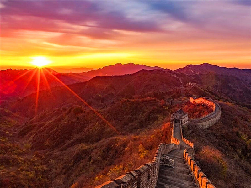 Mutianyu Great Wall Travel Area is surrounded with mountains and is of beautiful scenery. In spring, fragrant flowers are vying with each other in beauty and are blooming; in summer, mountains are covered with green coats and you can listen to music of flowing lake; by autumn, it is fruitful and can see red leaves dancing; by winter, Great Wall is painted of pure white and coated with silver costume, showing a northland scene. It enjoys a reputation of “Mutianyu surpassing others of Great Wall” and is the best scenic spot.