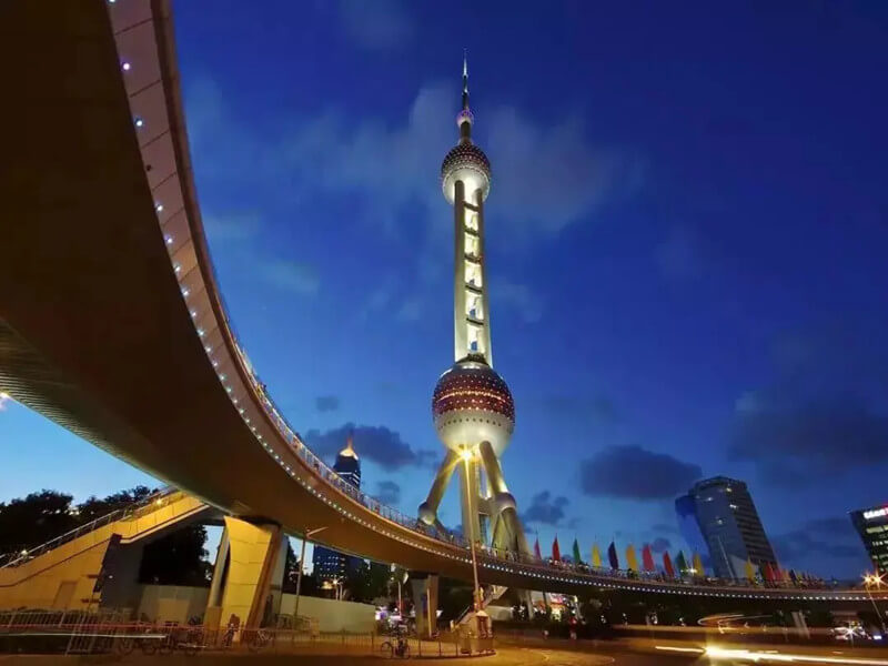 The Oriental Pearl Tower is located at the tip of Lujiazui in the Pudong district, opposite The Bund of Shanghai. It has become one of the symbolic buildings in Shanghai, just like the Statue of Liberty in New York, the Sydney Opera House, and the Eiffel Tower in Paris; melting itself into a new scene with Nanpu Bridge on the left and Yangpu Bridge on the right, nicknamed “double dragons playing the pearl”.