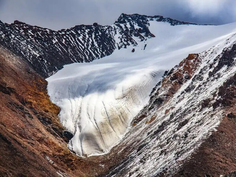 The annual water storage is 160 million cubic meters, which makes it a large solid fresh water reservoir. Far from the glacier people can feel its spectacularity: a crystal and bright world under the blue sky and white clouds. A five-kilometer path winds its way into the glacier, by which a monument named as “immortal mountain and snow head” stands. The total tour area is about 4 square kilometers.