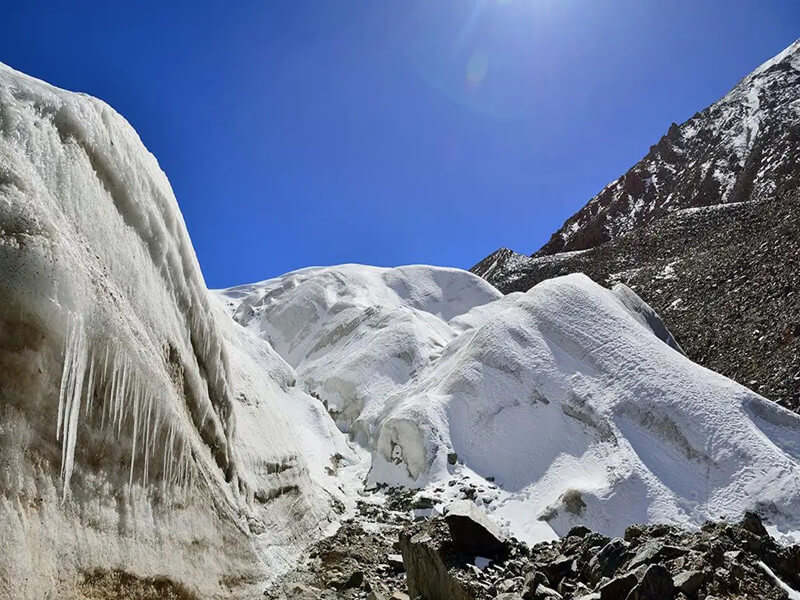 When tourists come in summer, they can see the glacier tail melting and waterfalls tumbling down. They can also see pheasants in the trees, flock and herd on the slope, snow lotus beside ice crystals. The kitchen smoke from the herdsmen’s tents waving in the breeze adds liveliness to the beautiful natural picture. However, this is an unfamiliar world which attracts numerous climbers and visitors.