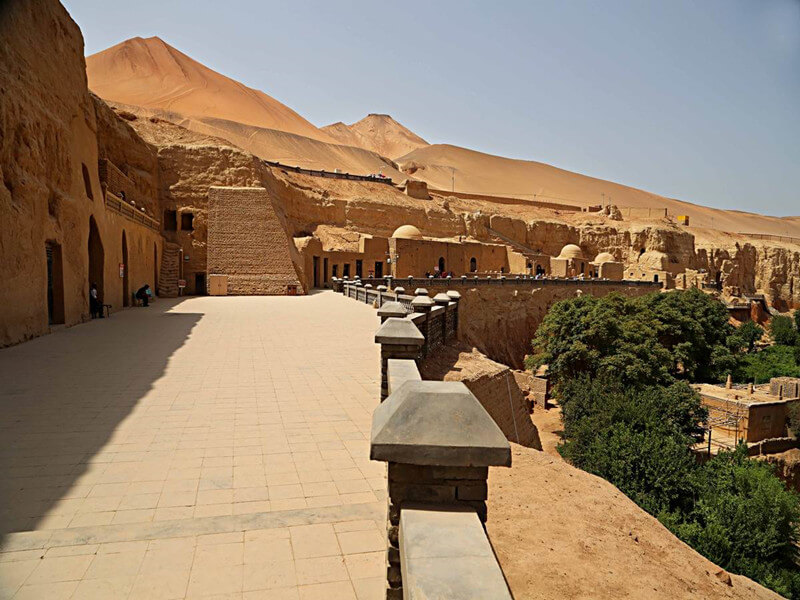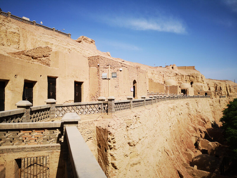 As one of the four major grottoes on silk road tour destinations of China, Bezeklik Thousand Buddha Caves is located on the west bank of Murtuq River Huoyanshan Valley about 40 kilometers east of downtown Turpan, Xinjiang Uygur Autonomous Region.