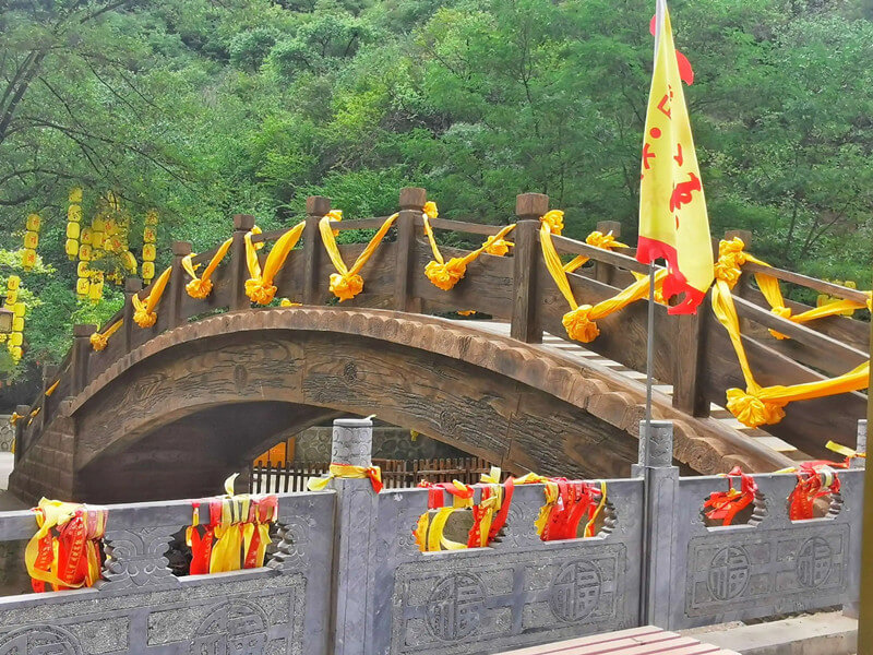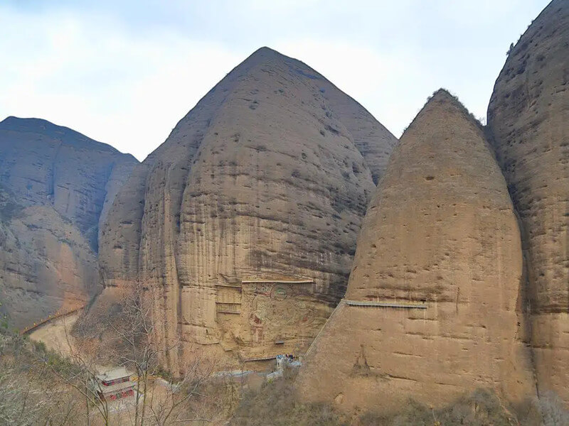 Near the cave is Laoshao Temple that was built in the Beiwei Dynasty. A large number of works of grotto art dating from the Beizhou Dynasty to the Yuan Dynasty are preserved in Laoshao Temple. There is a large fresco there over 40 meters tall on a huge cliff with guarding animals. The fresco covered about 2/3 of the cliff, and the part that remains is extremely precious.