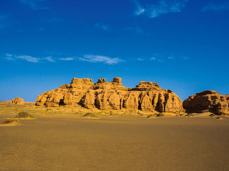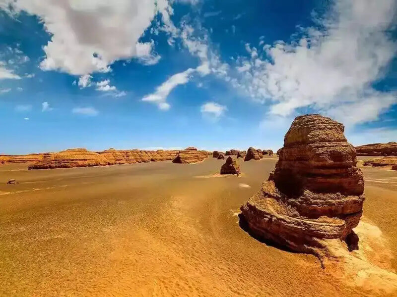 The Golden Lion statue, Pyramid and Peacock statue in the scenic spots are all wind-eroded rocky mountains, their shapes are quite similar to their names, and the West Sea Fleet is a Geomorphological group, this scenery is also the most spectacular of the four scenic spots, a battleship-like earth Mountain parallel distributed on the Gobi, it looks like a real fleet, that is quite unique. meanwhile, there are many special wind-eroded rock masses on both sides of the area where the vehicle does not stop.