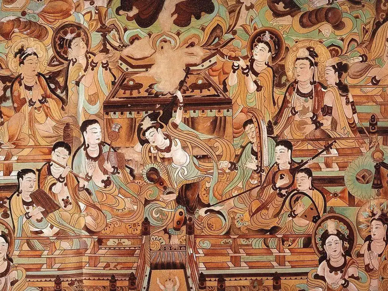 Arts and culture in Western Xia regime diversified with high achievement in painting, calligraphy, sculpture, dancing, and music In the Picture, Buddhist painting has passed down to today, existing in grottoes, temple murals among others, most abundant in Yulin Grottoes, Guazhou 瓜州. In the early Northern Song Dynasty, influenced by Uygur mural art and Tibetan Buddhism, it finally formed a unique artistic style; its unique artistic style was influence by Uyghur and Tibetan Buddhism.